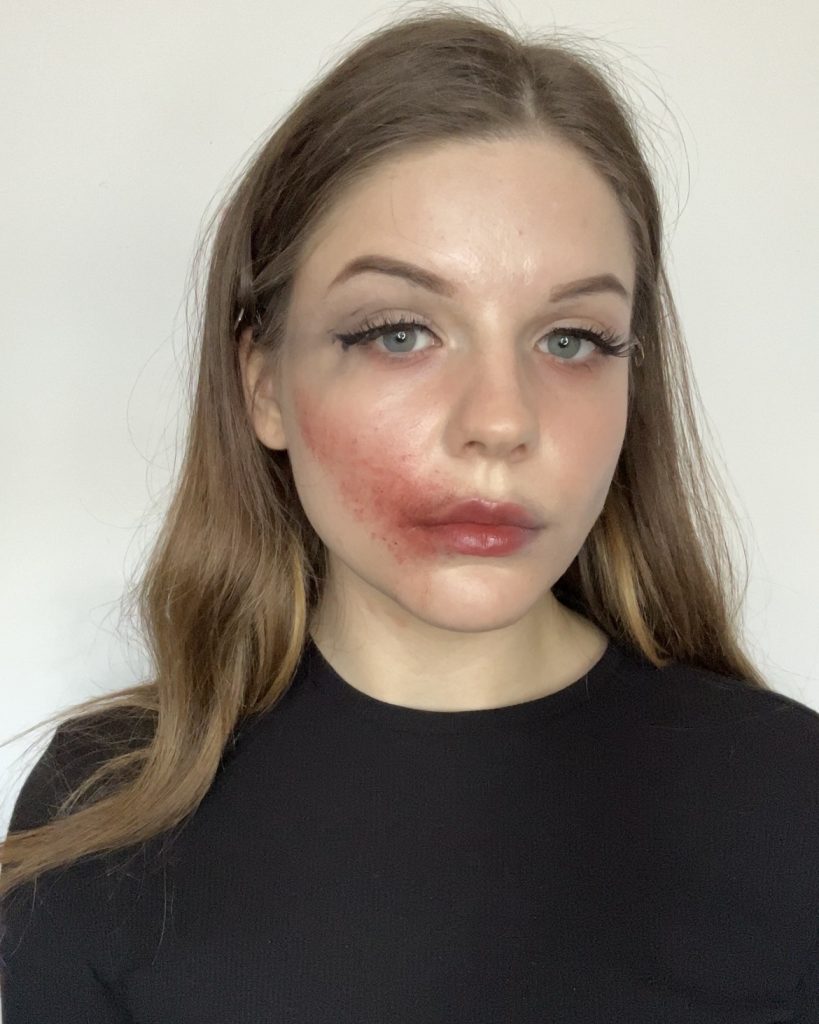 Tego tricku wcześniej nie znałam! Szczoteczka do brwi i czerwony tint to idealne duo do stworzenia „rany” na policzku. Wystarczy, że nałożysz kolorowy kosmetyk na grzebyk i rozprowadzisz to w dowolnym miejscu na twarzy z preferowanym natężeniem. To dobra alternatywa, jeśli sztuczna krew to nie Twoja bajka. Nie bój się eksperymentować!
