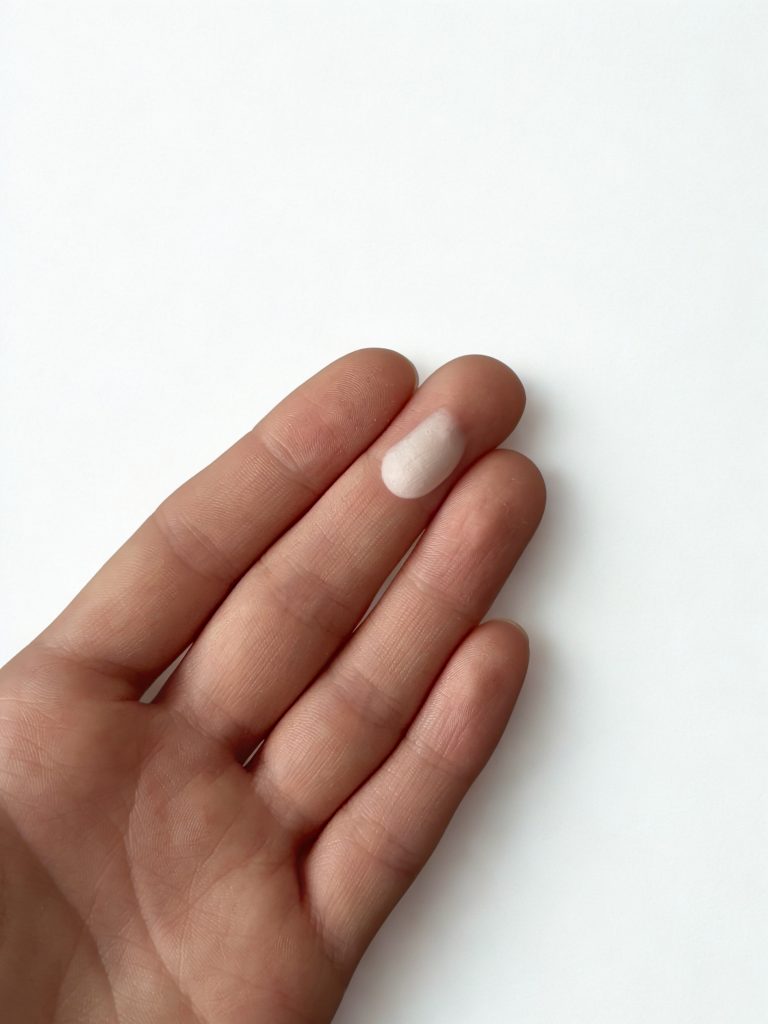 Zdjęcie nie oddaje w pełni tej wyjątkowej, niemal całkowicie przezroczystej konsystencji maski. Poniżej znajdziesz film, gdzie jest ona nakładana na dłoń – dzięki temu zobaczysz, jaką ma lekką, żelową formułę i jak pięknie stapia się ze skórą ✨.