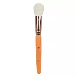 Aby to osiągnąć, nałóż róż za pomocą pędzla z włosiem ściętym pod skosem. Ma szeroką, niezbyt zbitą główkę, dzięki czemu można łatwo rozprowadzić kosmetyk bez robienia plamy na twarzy.