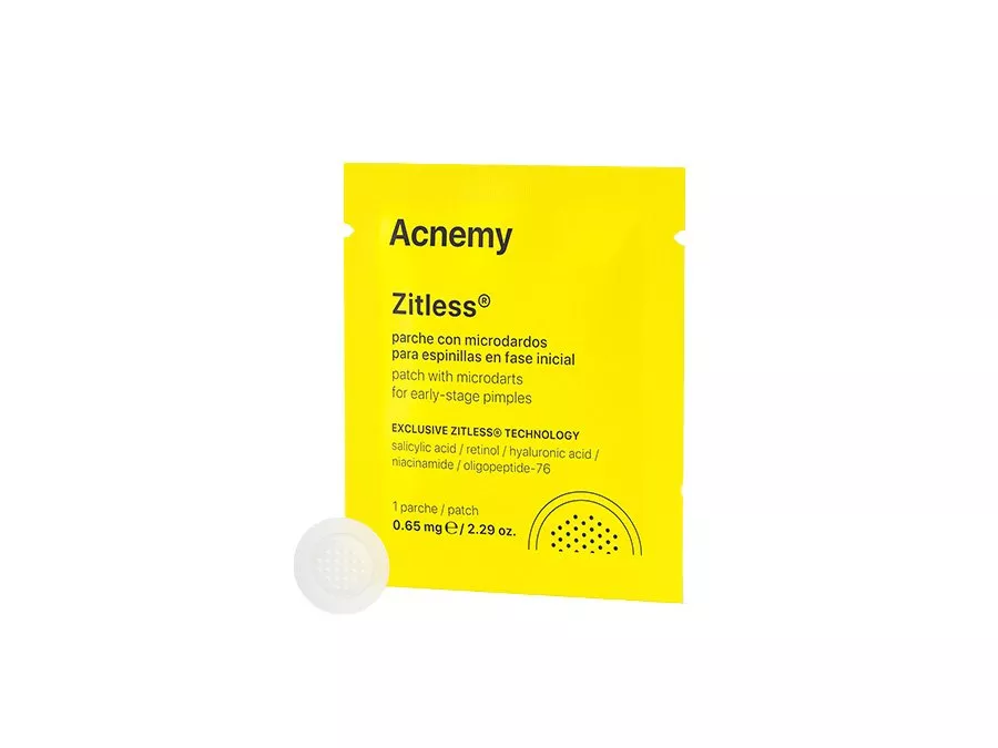 Acnemy - Zitless - Patches for Early-Stage Pimples - plastry miejscowo goją i podsuszają wyprysk oraz wchłaniają nadmiar sebum, zapobiegając powtórnej infekcji, dzięki zawartości niacynamidu, kwasu salicylowego oraz retinolu. Chronią zmianę trądzikową przed zabrudzeniami i czynnikami zewnętrznymi. Zalecane do stosowania na wewnętrzne, podskórne wypryski bez treści ropnej. Ich formuła jest wegańska.
