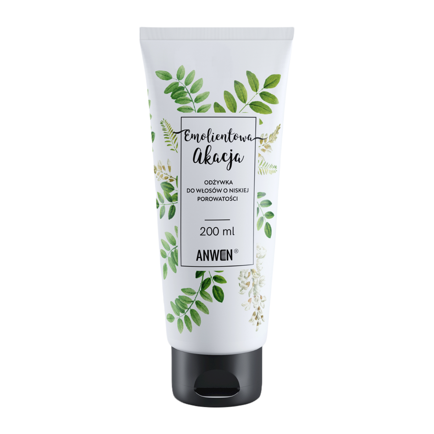 Anwen - Emolientowa Akacja - Odżywka do Włosów o Niskiej Porowatości - odżywka do włosów bogata w emolienty. Zawiera masło murumuru, olej kokosowy oraz olej babassu, które są bogate w kwasy tłuszczowe, dzięki czemu odżywiają i wygładzają włosy, a glinka i ekstrakt z morszczynu pęcherzykowatego nadaje włosom objętości. Odżywka posiada przyjemny, świeży zapach akacji. pH odżywki: 3,55. Została stworzona z 95% składników pochodzenia naturalnego, jest odpowiednia dla wegan i zgodna z less waste.