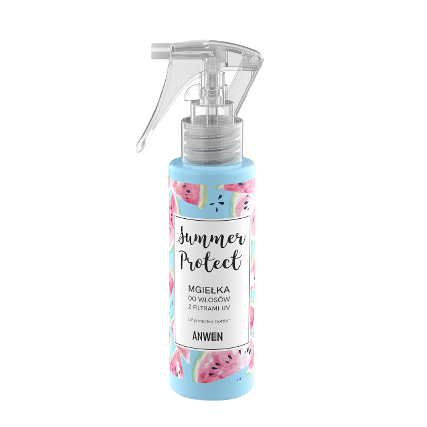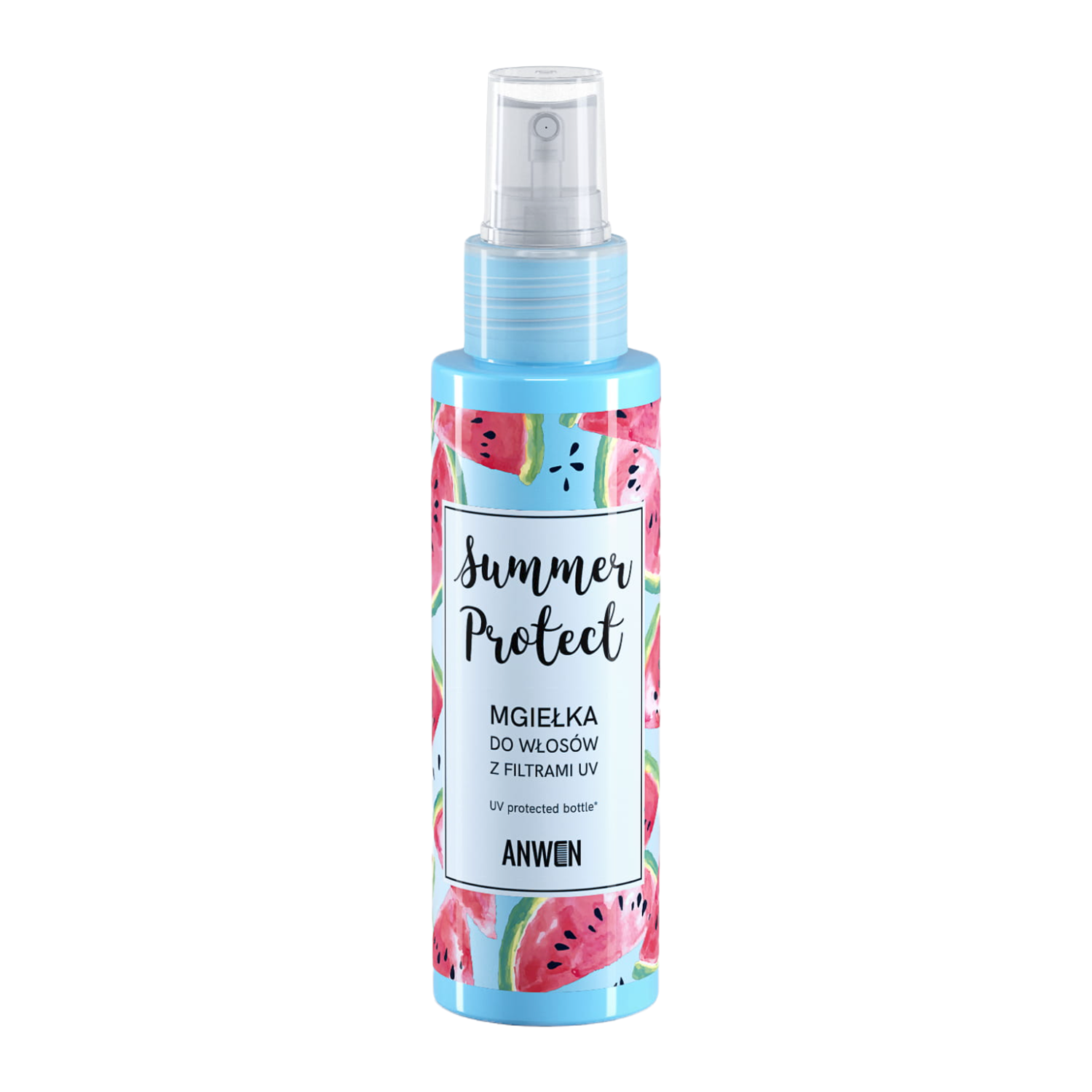 Anwen - Summer Protect - mgiełka do włosów zawierająca 2 chemiczne filtry UV, które chronią je przed niekorzystnym działaniem promieniowania słonecznego. Produkt zawiera olej z pestek malin oraz olej z kiełków pszenicy, które nawilżają, zmiękczają i wygładzają włosy. Dodatek Hyaloveil-P® - pochodnej kwasu hialuronowego zwiększa poziom nawilżenia włosów. Produkt jest odpowiedni dla wegan.
