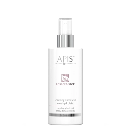Apis - Rosacea Stop - Łagodzący Hydrolat z Róży Damasceńskiej - hydrolat do skóry trądzikowej, wrażliwej i naczyniowej, który skutecznie nawilża i łagodzi podrażnienia. Co więcej, dzięki zawartości Agascalm™redukuje zaczerwienienia, a ekstrakt z czerwonej algi wpływa na wzmocnienie drobnych naczyń krwionośnych i poprawę jędrności skóry. Produkt pozostawia skórę ukojoną i złagodzoną. Kosmetyk naturalny.