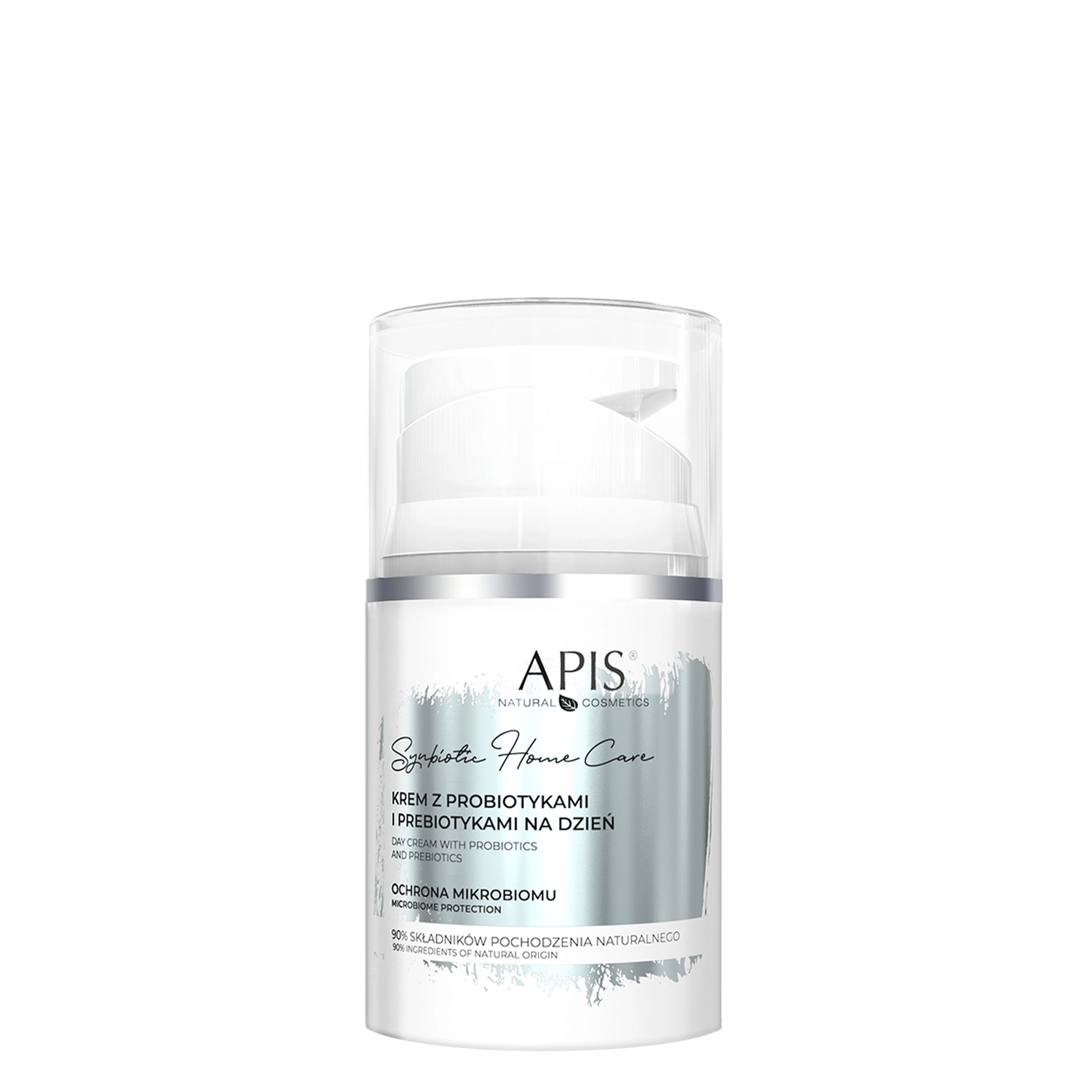 Apis - Synbiotic Home Care - Krem z Probiotykami i Prebiotykami na Dzień - odżywczy krem do pielęgnacji skóry twarzy. Dzięki zawartości produktu fermentacji bakterii mlekowych, ekstraktu z drożdży oraz kwasu salicylowego wspiera redukcję niedoskonałości twarzy. Pomaga utrzymać odpowiednie pH na skórze oraz zapobiega namnażaniu się patogennych bakterii. Działa także antyoksydacyjnie i nawilżająco. Masło shea i olej abisyński ograniczają ucieczkę wody przez naskórek oraz nadają gładkości. Kosmetyk naturalny.