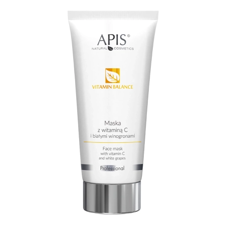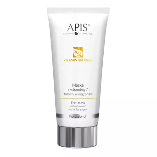Apis - Professional - Vitamin Balance - Face Mask with Vitamin C and White Grapes - bogata, odżywcza maska do pielęgnacji twarzy, szyi i dekoltu. Zawiera szereg dobroczynnych składników aktywnych. Witamina C delikatnie rozjaśnia koloryt i działa antyoksydacyjnie razem z ekstraktem winogronowym i ekstraktem z alg, co jest bardzo ważne w codziennej ochronie przed wolnymi rodnikami. Hialuronian sodu i hydrolizowana elastyna tworzą dobry duet chroniący skórę przed wysuszeniem. Nawilżają i zapobiegają uciecze wody, która ma do uciekania duże predyspozycje. Cennym składnikiem receptury jest tetrapeptyd, stymulujący procesy naprawcze skóry oraz delikatnie uelastyczniający. Maska może okazać się cennym dodatkiem do rutynowej pielęgnacji. Kosmetyk naturalny.