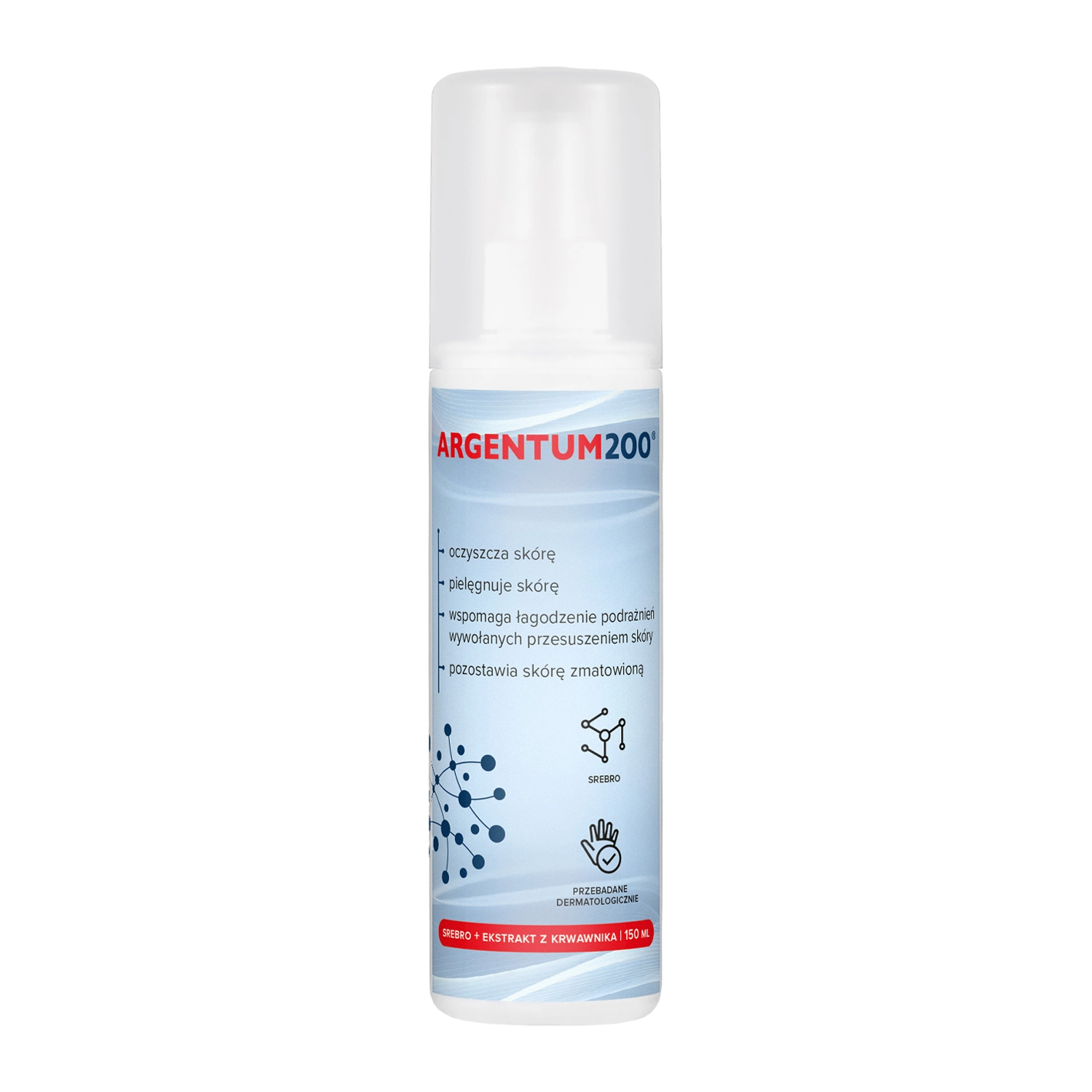 Aura Herbals - Srebro Argentum200 - tonik ze srebrem w nowej formule. Pielęgnuje skórę trądzikową, przetłuszczającą się, podrażnioną i potrzebującą regeneracji. Srebro ogranicza nadmiar wydzielanego sebum, działa antybakteryjnie, przyspiesza gojenie i łagodzi, a ekstrakt z krwawnika pospolitego nawilża, zmniejsza podrażnienia i wzmacnia kojącą formułę. Produkt nie powinien być używany przez dzieci, kobiety w ciąży i osoby uczulone na srebro.