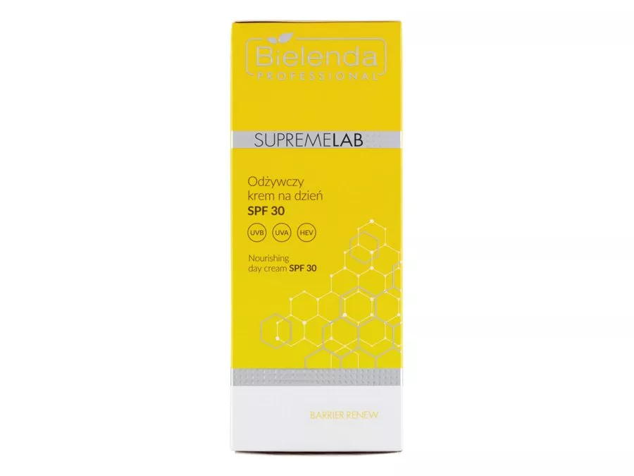 Bielenda Professional - Supremelab - Barrier Renew - Nourishing Day Cream SPF30 - Odżywczy Krem na Dzień - zawiera filtry chemiczne chroniące skórę przed promieniowaniem UV. Zawiera olej babassu, który odżywia skórę i zapobiega utracie nawilżenia, ceramidy, które wzmacniają barierę hydrolipidową oraz olej sacha inchi, który odżywia i poprawia elastyczność skóry. Dodatkowo, krem zawiera hialuronian sodu, który wiąże wodę w naskórku, zwiększając poziom jej nawilżenia.