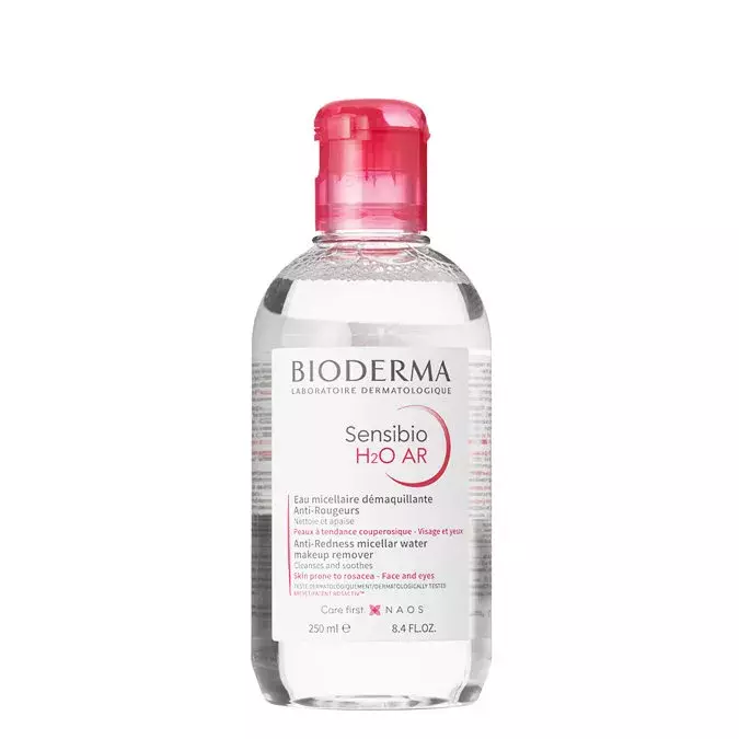 Bioderma - Sensibio AR H2O - Płyn Micelarny do Skóry Wrażliwej i Naczynkowej - płyn do demakijażu. Został skomponowany z myślą o osobach o wrażliwej i naczyniowej skórze. W składzie posiada łagodne substancje myjące, które tworzą micele i w ten sposób skutecznie usuwają lipidowe cząstki produktów makijażowych, jednocześnie nie podrażniając skóry. Ekstrakty z aloesu i ogórka wspomagają redukcję zaczerwienień oraz rozszerzeń naczyniowych. Łagodzą podrażnienia i koją wrażliwą skórę. Dodatek lecytyny oraz mannitolu zapobiega uszkodzeniu bariery hydrolipidowej podczas procesu oczyszczania. Ekstrakt z miłorzębu japońskiego zapewnia antyoksydację, która także jest pozytywnym wsparciem dla skóry.