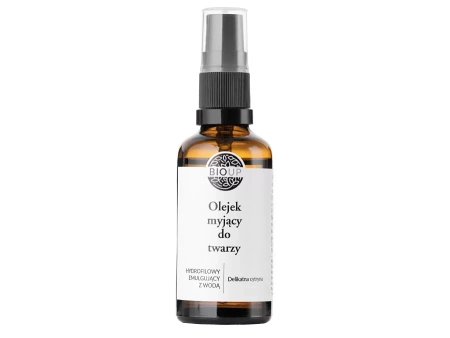 Bioup - Hydrofilowy Olejek Myjący do Twarzy - emulgujący w kontakcie z wodą olejek łączy w sobie zalety pielęgnacji skóry olejami z łatwością spłukiwania wodą. Zawiera oleje, m.in. z pestek moreli i z pestek winogron, które wzmacniają barierę lipidową skóry, niejonowy emulgator - glyceryl cocoate, czyli łagodny środek myjący oraz skwalan pozyskiwany z trzciny cukrowej o działaniu nawilżającym. Skutecznie, ale delikatnie usuwa z twarzy zanieczyszczenia oraz makijaż.