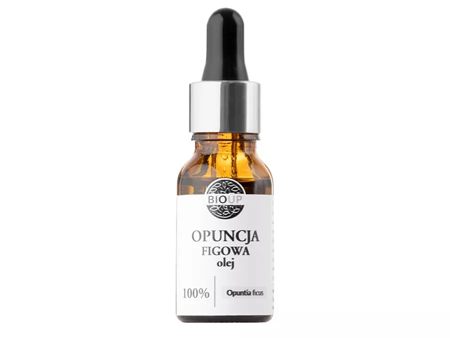 Bioup - 100% Olej z Opuncji Figowej - zimnotłoczony olej z opuncji figowej o działaniu przeciwzmarszczkowym i odżywczym. Bogaty w NNKT, przez co chroni skórę przed fotostarzeniem i wolnymi rodnikami. Olej z opuncji figowej zawiera także cenne fitosterole odpowiedzialne za regenerację naskórka i jego odpowiednie nawilżenie. Polecany także do pielęgnacji okolic oczu. Nie działa komedogennie i nie pozostawia tłustej warstwy.