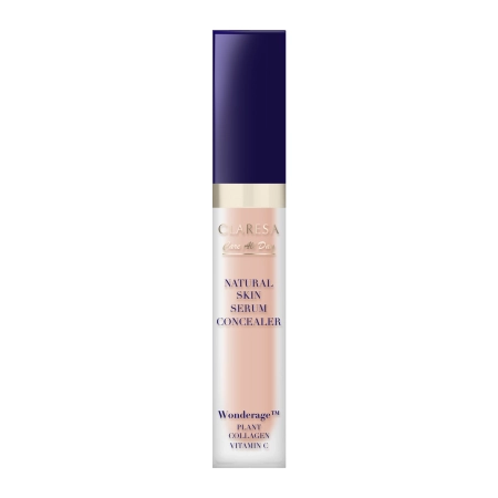Claresa - Natural Skin Serum Concealer - 1P Peach - korektor-serum do twarzy i pod oczy, który łączy w sobie właściwości korygujące oraz pielęgnacyjne. Zawiera składniki aktywne tj. WONDERAGE™, roślinny odpowiednik kolagenu i witaminę C w stabilnej formie. Ich połączenie poprawia poziom nawilżenia naskórka, a przede wszystkim działa przeciwstarzeniowo i ujędrniająco, czyniąc z tego produktu idealną propozycję dla cer wiotkich i dojrzałych. Lekka, kremowa konsystencja doskonale rozprowadza się na skórze, nie obciążając jej, a ponadto nie zbiera się w załamaniach skóry i zmarszczkach. Korektor-serum wykazuje średni poziom krycia, a jego formuła jest długotrwała i zastygająca. Produkt sprawdzi się dla delikatnej skóry wokół oczu.