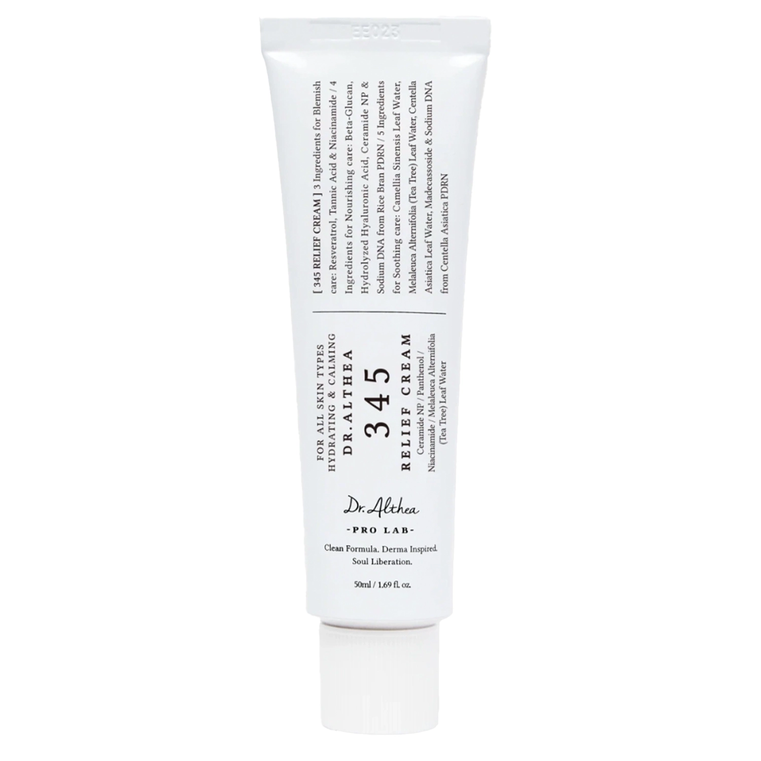 • 345 Relief Cream - lekki, regenerujący krem przeznaczony do codziennej pielęgnacji twarzy. Dzięki zawartości m.in. resweratroluekstraktu z liści wąkroty azjatyckiejpantenolu i hialuronianu sodu, skutecznie wspiera procesy regeneracyjne skóry, jednocześnie przywracając jej nawilżenie, miękkość oraz przyjemne uczucie komfortu i ukojenia. Jego pojemność wynosi 50ml.