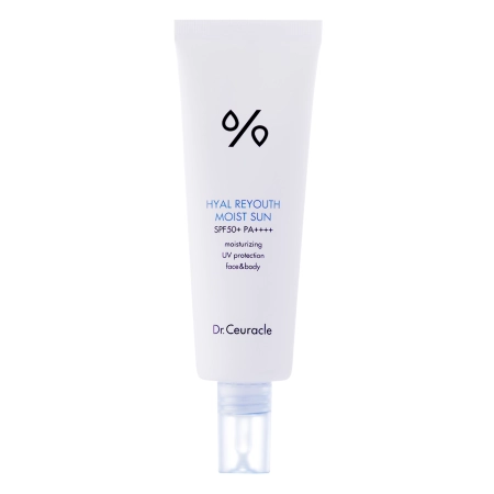 Dr.Ceuracle - Hyal Reyouth Moist Sun SPF50/PA++++ - krem chroniący skórę przed promieniowaniem słonecznym, dzięki zawartości filtrów chemicznych. Jego formuła została skomponowana tak, by odpowiadać potrzebom skór suchych. Poza działaniem ochronnym, produkt głęboko nawilża skórę, co zawdzięcza obecności kwasu hialuronowego. Niacynamid wzmacnia barierę ochronną skóry i działa antyoksydacyjnie. Z kolei pantenol wspomaga nawilżenie i łagodzi podrażnienia.