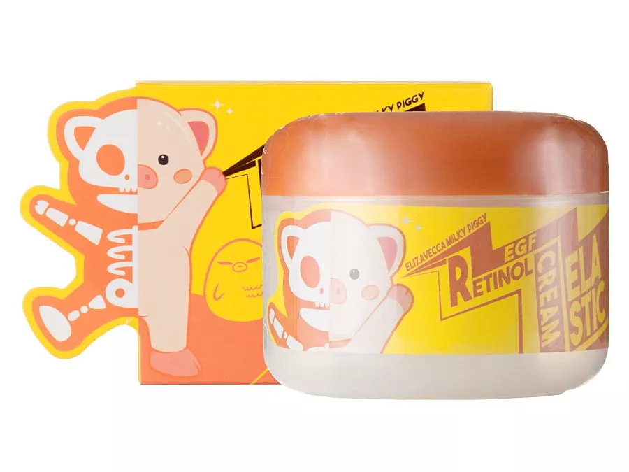 Elizavecca - Milky Piggy EGF Elastic Retinol Cream - krem bazujący na ekstrakcie z gniazd Swiftlet z dodatkiem witaminy A w formie Retinolu. Obie substancje wykazują działanie przeciwstarzeniowe, rozjaśniające i wygładzające nierówności skóry. Retinol jest również silnym antyoksydantem. Za nawilżenie i działanie ochronne na naskórek odpowiada olej makadamia, a niacynamid pomaga ograniczyć nadprodukcję sebum i działa przeciwzapalnie. Krem działa seboregulująco, a jednocześnie nawilża i odżywia skórę, skutecznie walcząc z oznakami starzenia i przebarwieniami.