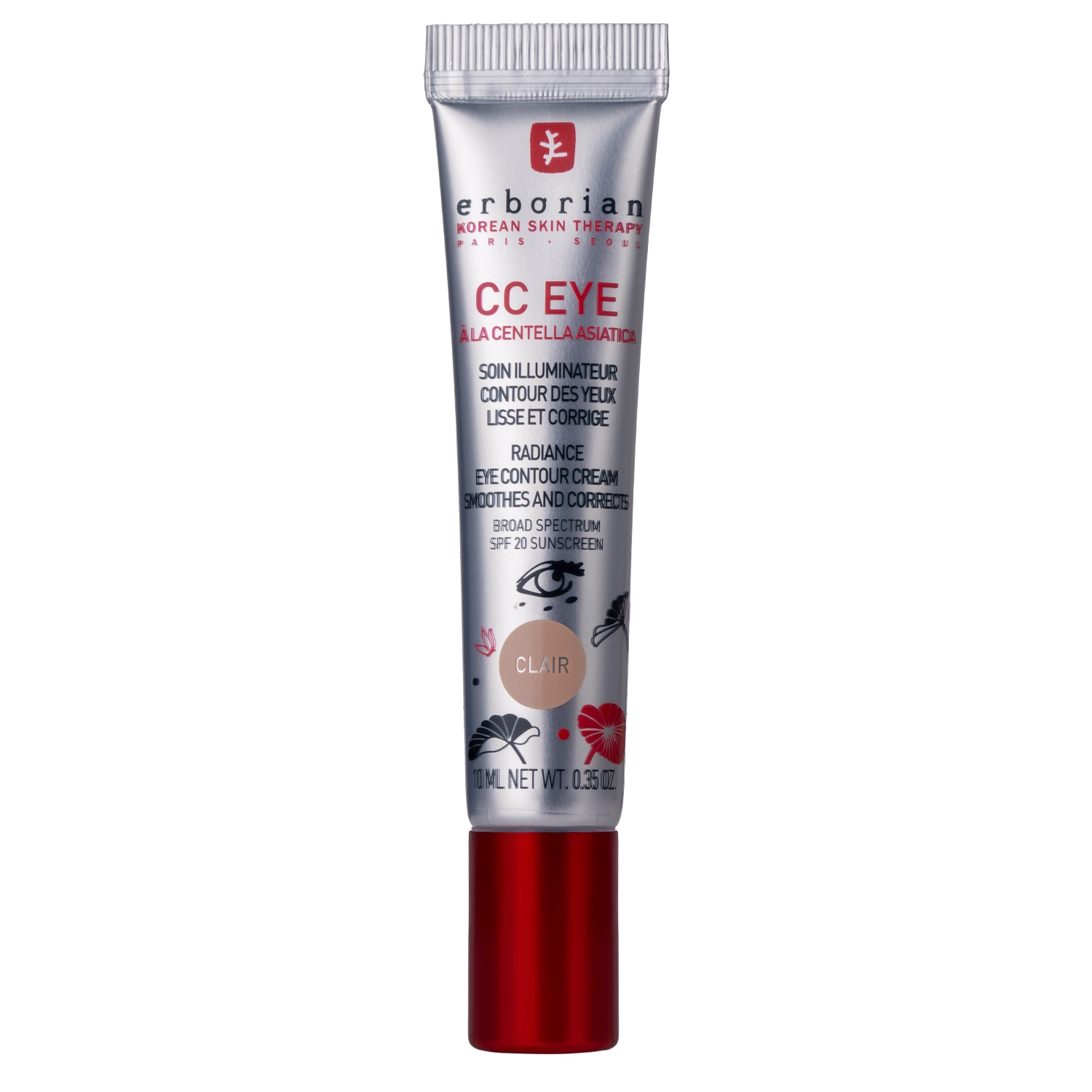 Erborian - CC Eye - krem tonujący do okolic oczu, o działaniu wygładzającym. Zmniejsza widoczność cieni pod oczami, wygładza drobne linie, nawilża, a także zapewnia dodatkową ochronę przed promieniowaniem słonecznym na poziomie SPF20, dzięki filtrom mieszanym. Jego lekka konsystencja jest łatwa w aplikacji palcami i gąbeczką. Dzięki zawartości witaminy E i gliceryny produkt dodatkowo nawilża i uelastycznia.