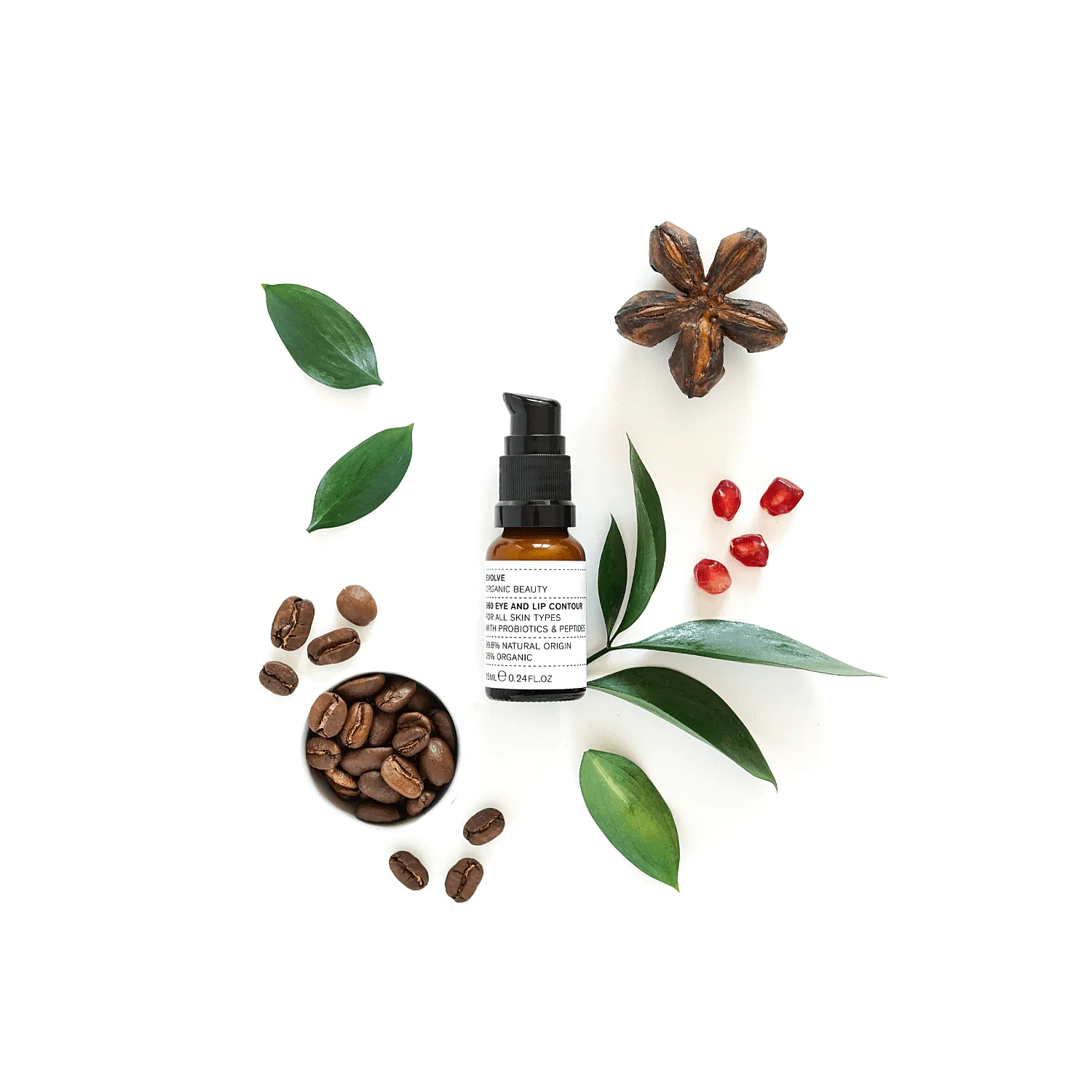 Evolve Organic Beauty - 360 Eye And Lip Contour - krem przeciwstarzeniowy stworzony specjalnie dla okolic oczu i okolic ust. Formuła opiera się o prebiotyki które dbają o mikrobiom skóry, zapewniają kompleksową ochronę i odmładzanie. Obecna kofeina zwalcza obrzęki i cienie pod oczami. Naturalne, roślinne peptydy z Sacha Inchi minimalizują widoczność zmarszczek wokół oczu i ust. Produkt zapewnia silne działanie antyoksydacyjne dzięki ekstraktowi z zielonej herbaty i olejowi arganowemu, ten dodatkowo zmiękcza i odżywia delikatną skórę. Powstał ze składników pochodzenia naturalnego, jest odpowiedni dla wegan i zgodny z ideą less waste.