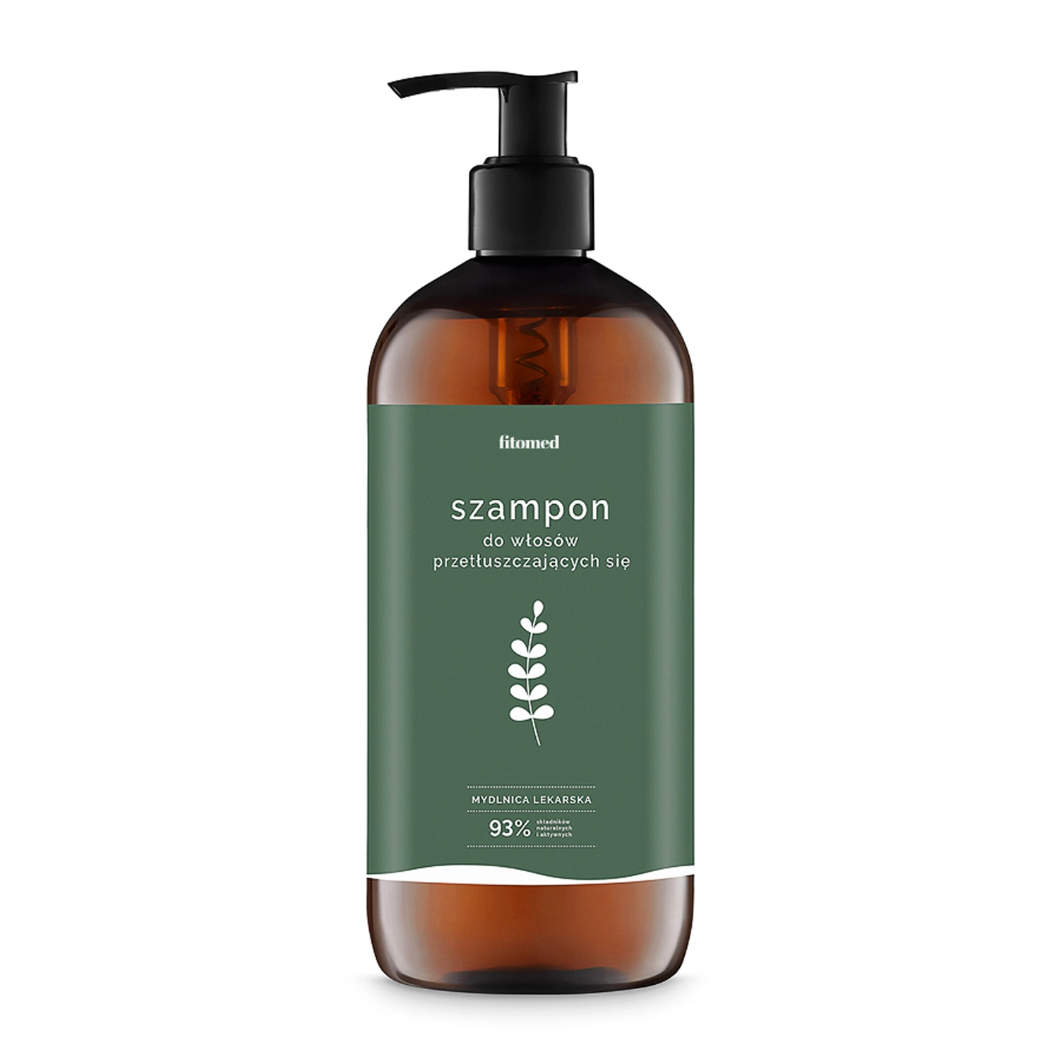 Fitomed - Szampon Ziołowy do Włosów Przetłuszczających się - szampon przeznaczony do oczyszczania włosów i skóry głowy skłonnej do przetłuszczania oraz łupieżu. W jego składzie znajdują się ziołowe wyciągi, ekstrakt z korzenia mydlnicy lekarskiej wspomaga działanie oczyszczające, dzięki zawartości saponin. Dodatek ekstraktu z liści szałwii oraz rozmarynu działa przeciwłupieżowo, antyseptycznie, ściągająco oraz zmniejsza wydzielanie łoju, dzięki czemu ogranicza przetłuszczanie. Łagodna receptura jest odpowiednia również dla wrażliwej skóry głowy. Formuła jest wegańska, powstała z 93% składników pochodzenia naturalnego.