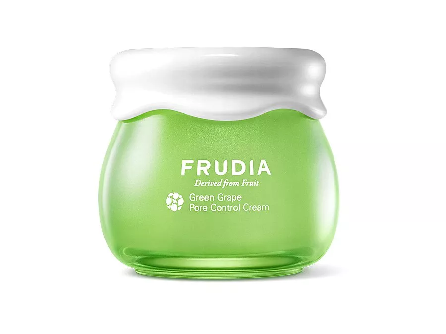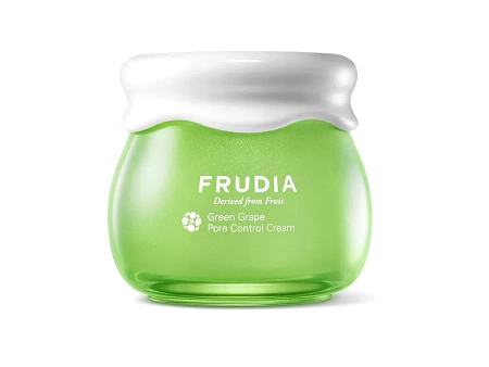 Frudia - Green Grape Pore Control Cream - krem do twarzy o właściwościach nawilżających. W jego lekkiej formule zawarty został ekstrakt z winogron o działaniu rozświetlającym i nawilżającym. Obecna w składzie betaina zapewnia dodatkowe nawilżenie, a wraz z pantenolem koi i łagodzi podrażnienia. Dodatek glukonolaktonu (łagodnego kwasu PHA) wyraźnie wygładza, nawilża i jednocześnie wzmacnia barierę ochronną skóry. Produkt zamknięty został w estetycznym słoiczku.