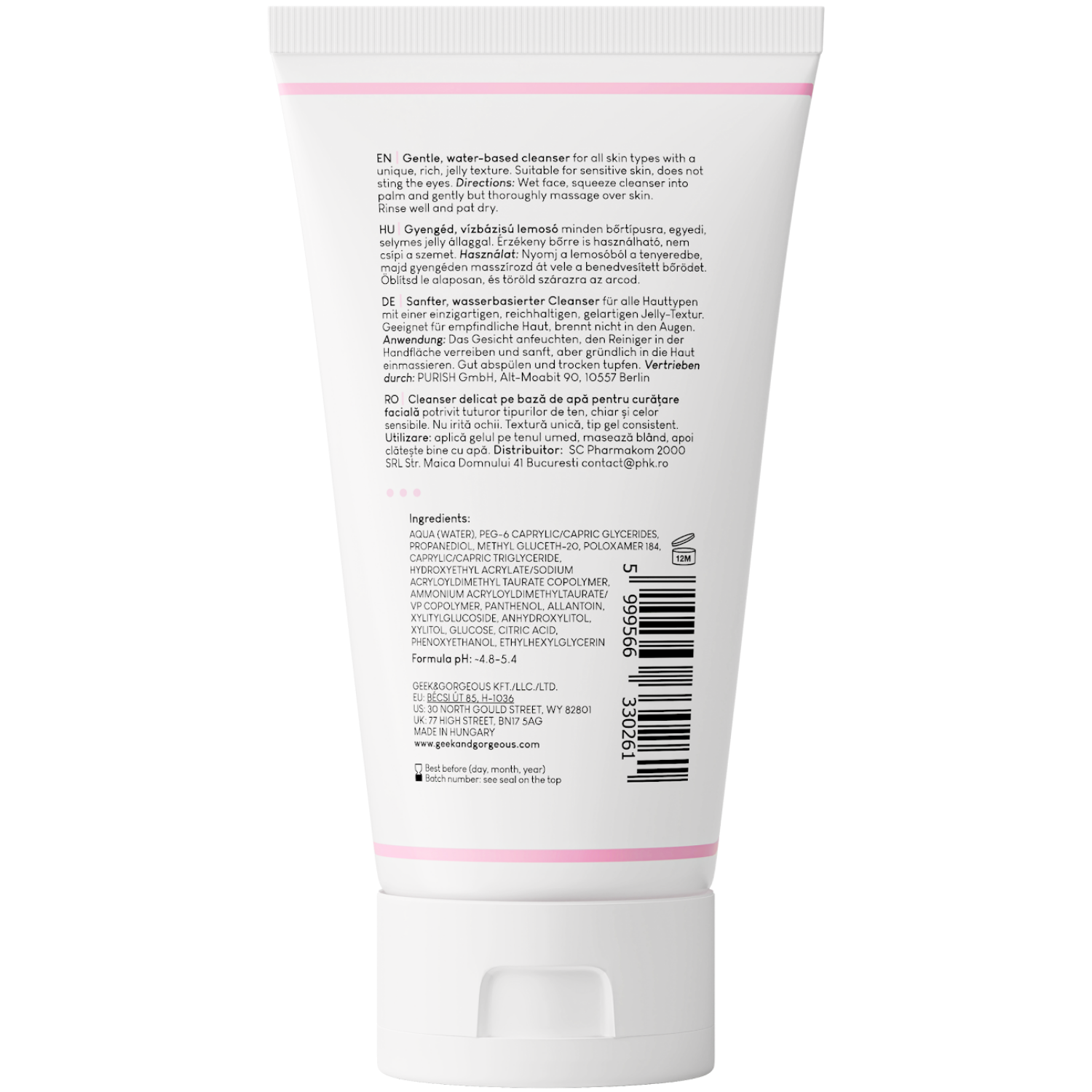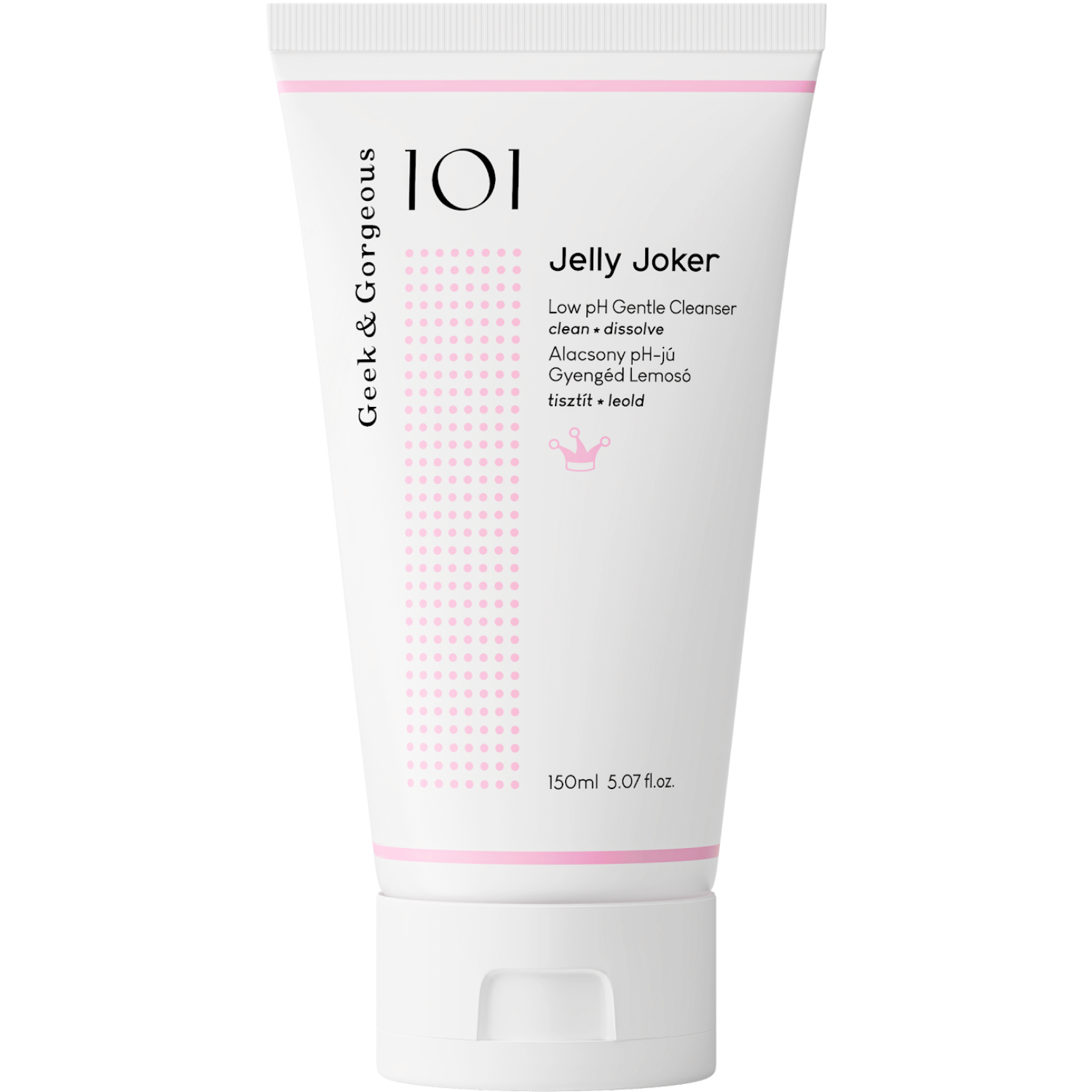 Geek & Gorgeous - Jelly Joker - delikatny żel do mycia twarzy o konsystencji galaretki. Zawiera łagodne składniki myjące, które skutecznie usuwają makijaż i zanieczyszczenia z powierzchni skóry, nie naruszając przy tym jej bariery ochronnej i nie powodując uczucia ściągnięcia. Został wzbogacony o nawilżające skórę cukry oraz pantenol i alantoinę, które łagodzą podrażnienia i koją skórę. Produkt przeznaczony jest do każdego typu cery. Ma pH równe 5-5,4. Żel ma wegańską formułę.