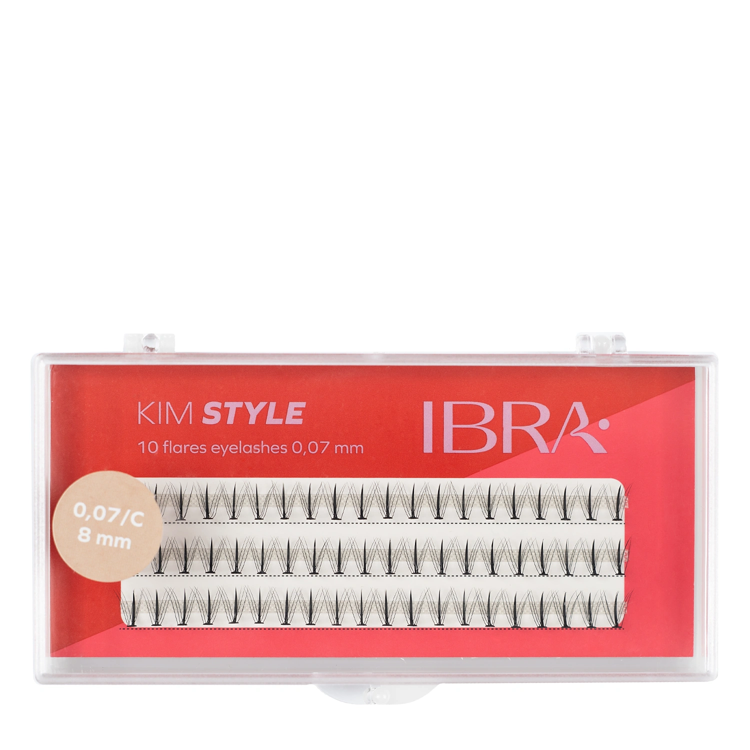 Ibra Makeup - Kępki Rzęs Kim Style C 0,07 - 8mm - kępki rzęs z serii Kim Style, które wydłużają rzęsy i zapewniają puszysty efekt. Pozwalają na uzyskanie wyraźnego efektu foxy eyes, jak również naturalnej, lekko poszarpanej stylizacji. Są dostępne w różnych długościach, dzięki czemu możemy stopniować efekt.