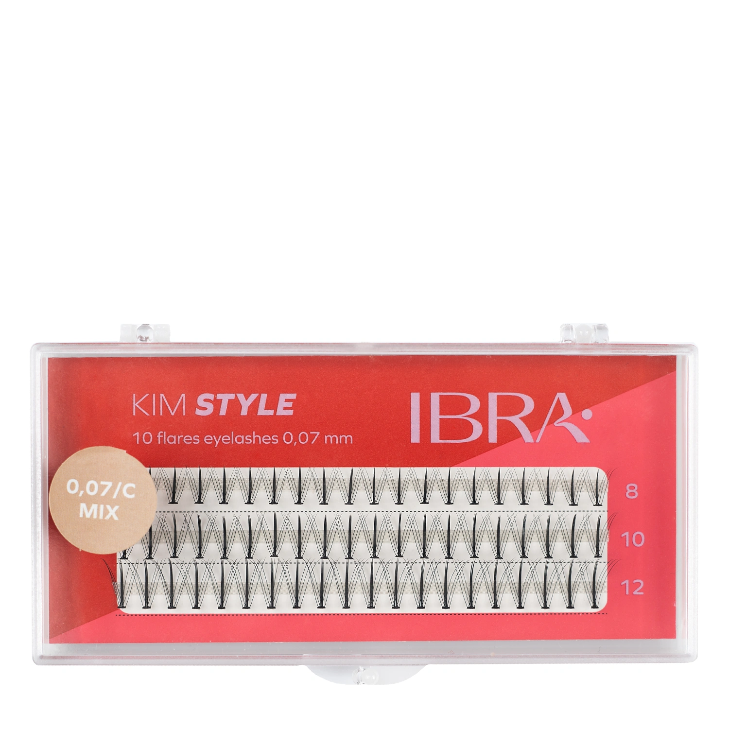 Ibra Makeup - Kępki Rzęs Kim Style C 0,07 - MIX - kępki rzęs z serii Kim Style, które wydłużają rzęsy i zapewniają puszysty efekt. Pozwalają na uzyskanie wyraźnego efektu foxy eyes, jak również naturalnej, lekko poszarpanej stylizacji. Występują w różnych długościach (8, 10, 12mm), dzięki czemu możemy stopniować efekt.