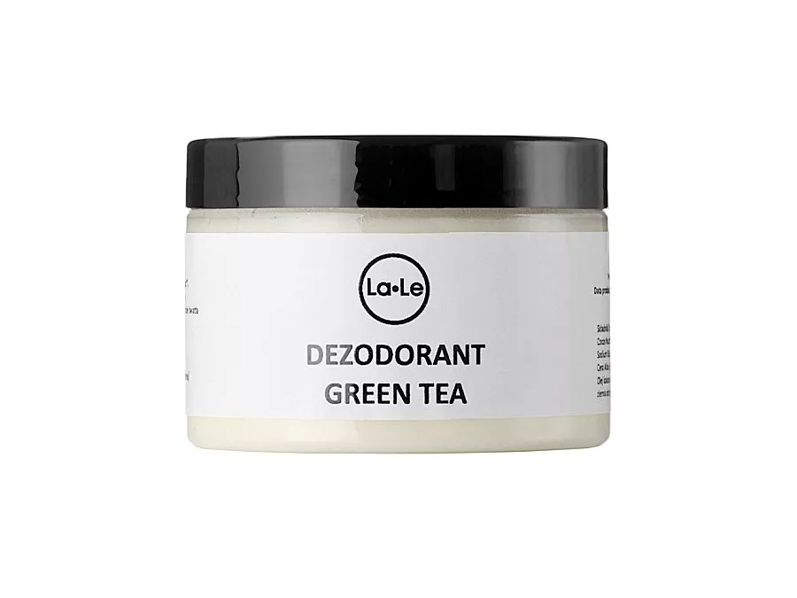 La-Le - Dezodorant Green Tea - dezodorant o zapachu zielonej herbaty, stworzony na bazie oleju kokosowego, który ułatwia nakładanie i rozprowadzanie produktu, a ponadto wykazuje właściwości ochronne i antybakteryjne. Zawiera sodę oczyszczoną neutralizującą bakterie powodujące przykry zapach oraz skrobię i ziemię okrzemkową, które wiążą krople potu i pochłaniają wilgoć.