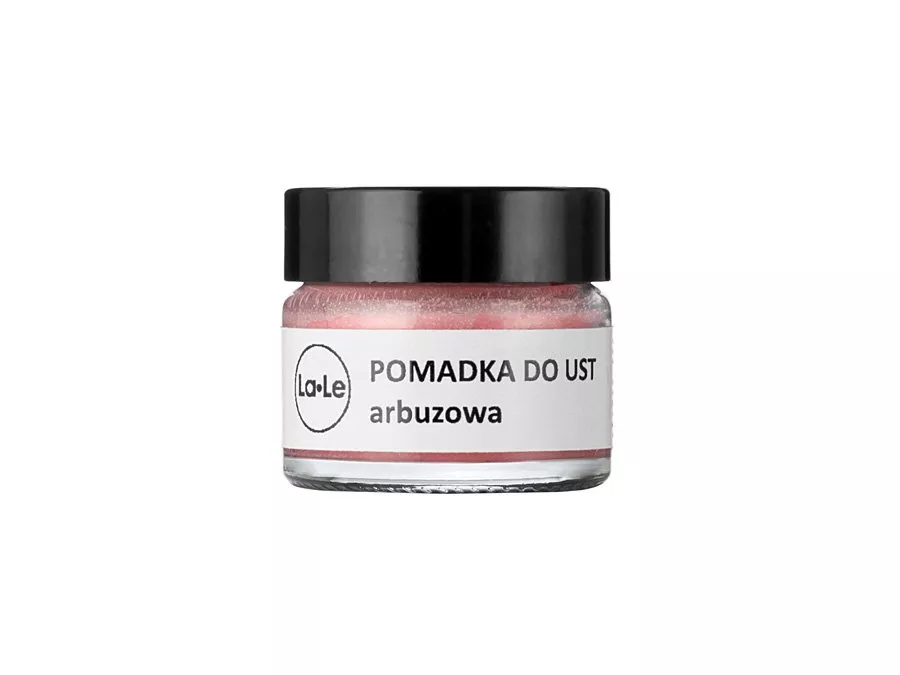 La-Le - Pomadka Nawilżająca do Ust - Arbuz - odżywcza pomadka do pielęgnacji ust o zapachu arbuzowym. Olej kokosowy i masło kakaowe zawarte w kosmetyku chronią usta przed czynnikami zewnętrznymi i nawilżają przez co usta wydają się pełniejsze i pozbawione suchych skórek. Wysoka zawartość wosku pszczelego i masła shea cudownie odżywią i nawilżą najbardziej spierzchnięte usta.