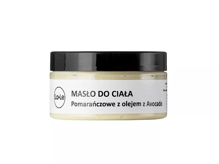 La-Le - Masło do Ciała - Pomarańczowe z Olejem z Avocado - masło do ciała, które zawiera emolienty, takie jak masło shea, olej kokosowy, olej z awokado. Składniki te zapobiegają utracie wody z naskórka, chronią skórę przed przesuszeniem, łagodzą podrażnienia i nawilżają. Skóra po zastosowaniu masła jest wygładzona, uelastyczniona, zmiękczona oraz otulona zapachem olejku ze skórki pomarańczy.