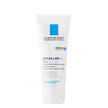 La Roche-Posay - Effaclar H Iso-Biome - krem do codziennej pielęgnacji skóry twarzy. Wspiera regenerację stanów zapalnych dzięki zawartości intensywnie odżywczego skwalanu. Niacynamid wzmacnia barierę ochronną skóry oraz działa przeciwzapalnie i rozjaśniająco. Z kolei pantenol łagodzi podrażnienia, zmiękcza i uelastycznia skórę. Krem może okazać się pomocny szczególnie u osób po przejściu wielu niedoskonałości, ze skórą potrzebującą regeneracji, odbudowy i ukojenia.