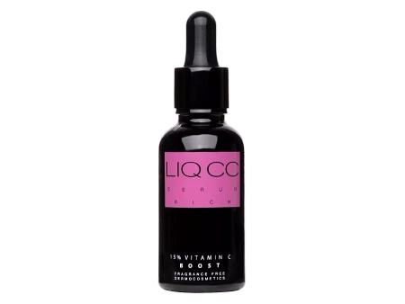 LiqPharm - LIQ CC Serum Rich 15% Vitamin C BOOST - bogate serum z 15% zawartością witaminy C, która zwalcza wolne rodniki, działa przeciwzapalnie i rozjaśnia przebarwienia. Aktywność czystej, niezjonizowanej formy witaminy C potęgowana jest przez obecność witaminy E i magnezu, które jednocześnie działają ochronnie, regenerująco oraz odżywczo. Formuła serum została wzbogacona o hialuronian sodu, czyli małocząsteczkowy kwas hialuronowy, zapewniający nawilżenie i wygładzenie skóry. Produkt nie zawiera substancji zapachowych i sztucznych barwników. Produkt ma pH o wartości <3,2.