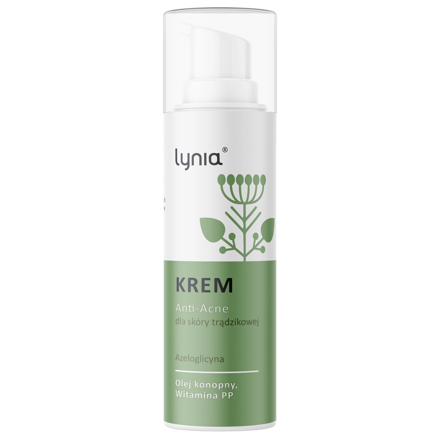 Lynia - Anti-Acne - krem przeciwtrądzikowy dedykowany dla skór problematycznych, przeznaczony do codziennego użytku. Idealnie sprawdza się również w roli bazy pod makijaż. Kosmetyk zawiera azeloglicynę wykazującą działanie przeciwzapalne i seboregulujące, a także sok z aloesu, który nawilża i koi podrażnienia. Receptura została oparta na oleju z nasion konopi, który działa antytrądzikowo i łagodząco. W jego składzie znajdziemy również niacynamid, który pomaga walczyć z niedoskonałościami, reguluje pracę gruczołów łojowych oraz działa uspokajająco.