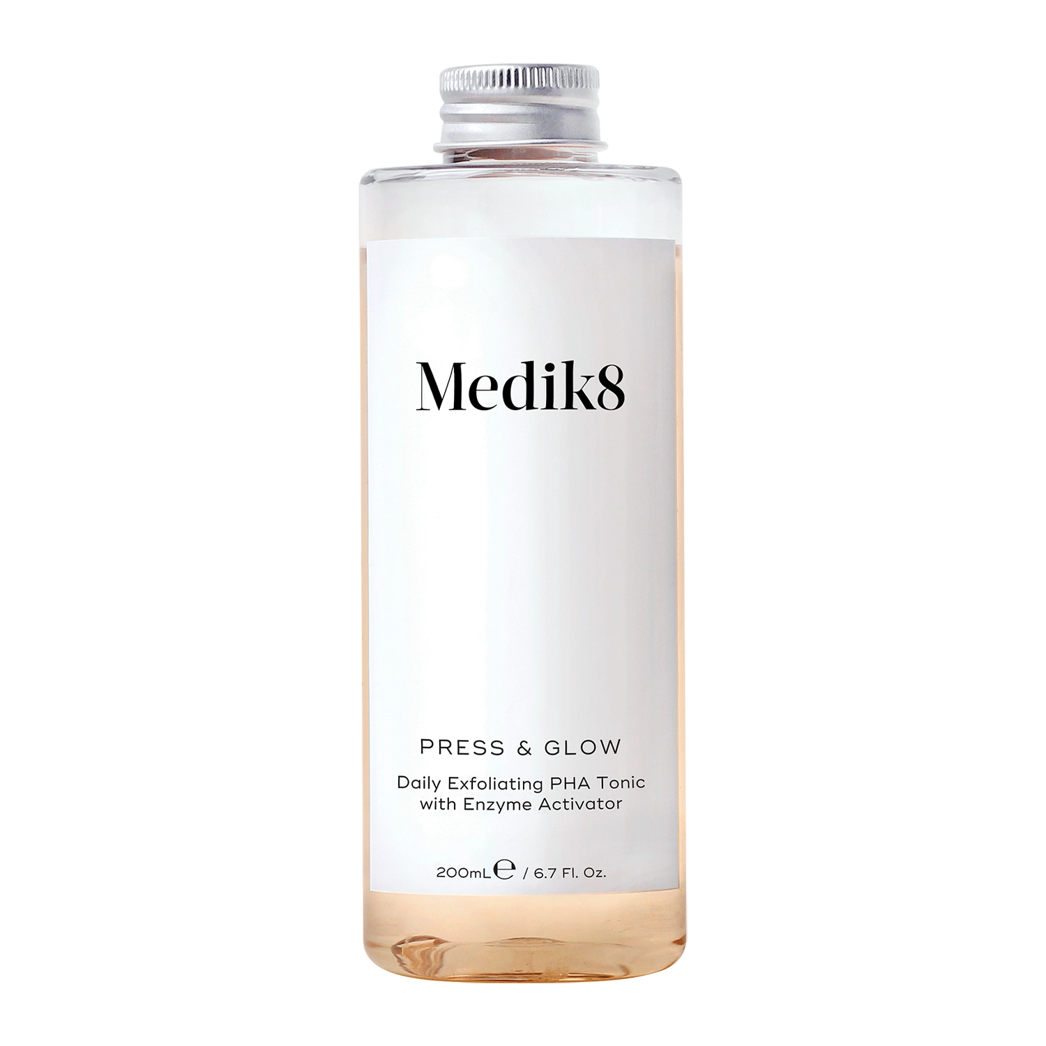 Medik8 - Press&Glow - tonik kwasowy zawierający glukonolakton w stężeniu 5,5%, który złuszcza martwe komórki naskórka, ponadto silnie nawilża, przyspiesza regenerację, odżywia, ujędrnia i wygładza, działa przeciwzapalnie. Ekstrakt z opuncji przyspiesza procesy złuszczania naskórka, wspomaga regenerację, działa przeciwzapalnie i nawilżająco, a sok aloesowy przyspiesza gojenie ran, koi i łagodzi podrażnioną skórę, posiada właściwości nawilżające. Z kolei dodatek ekstraktu z jagód acai poprawia sprężystość skóry, wykazuje właściwości antyoksydacyjne, a także wspomaga regenerację. W ofercie dostępny jest także ten tonik w opakowaniu z pompką. Produkt less waste i odpowiedni dla wegan.