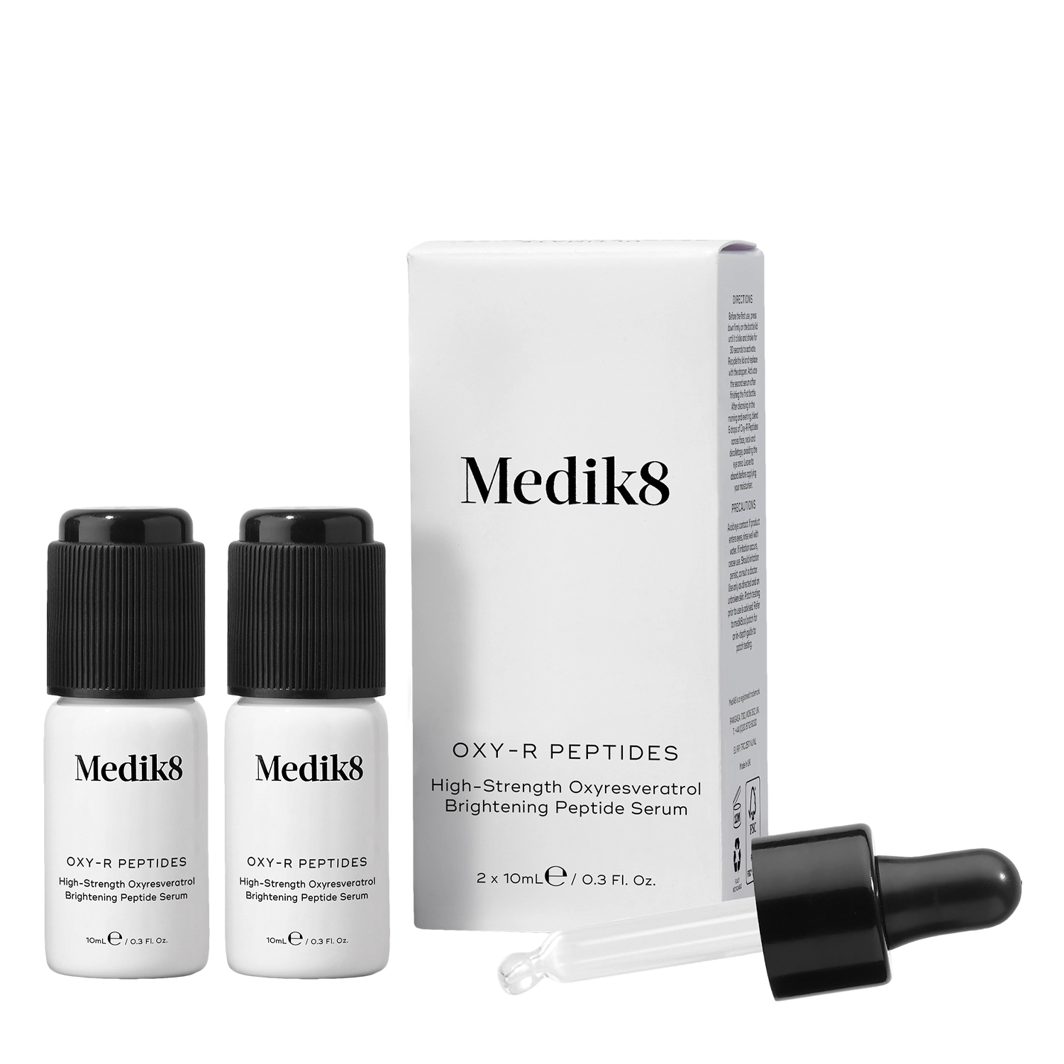 Medik8 - Oxy R - Peptides - serum na przebarwienia. Zawarte w nim: oksyresweratrol, tetrapeptyd-30 i ekstrakt z drewna Artocarpus Lakoocha skutecznie wyrównują koloryt cery, rozjaśniają przebarwienia i zapobiegają powstawaniu nowych zmian pigmentacyjnych. Dodatek glukonolaktonu chroni przed szkodliwym działaniem wolnych rodników i działa przeciwzapalnie, a kwas hialuronowy odpowiada za odpowiednio wysoki poziom nawilżenia skóry. Produkt less waste i odpowiedni dla wegan.