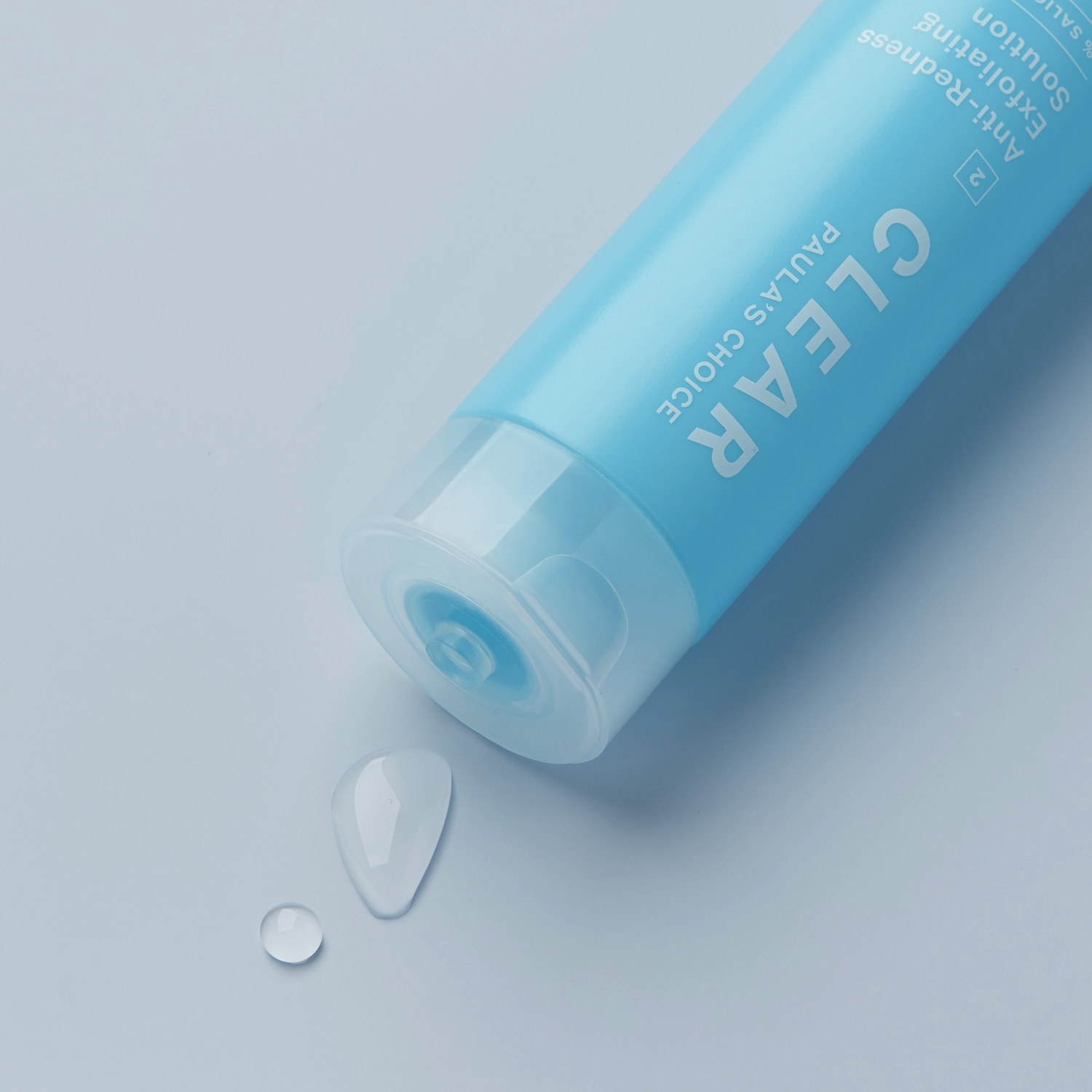 Paula's Choice - Clear - Regular Strength Anti-Redness Exfoliating Solution 2% BHA - peeling kwasowy z zawartym 2% kwasem salicylowym - beta-hydroksykwasem, który rozpuszcza się w tłuszczach, dzięki czemu może przenikać przez warstwę lipidową skóry i oczyszczać zaczopowane ujścia gruczołów łojowych, a to z kolei zmniejsza ich widoczność. Dodatkowo produkt zawiera pantenol i alantoinę, które koją i łagodzą podrażnienia.