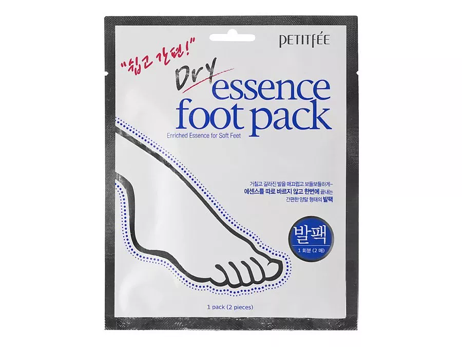 Petitfee - Dry Essence Foot Pack - wygładzająca maska do stóp. W swoim składzie zawiera masło shea, olej z nasion słonecznika i filtrowany śluz ślimaka, które intensywnie odżywiają i wygładzają skórę stóp. Dodatek składników, takich jak mocznik i ekstrakt z aloesu dobrze nawilża i łagodzi podrażnienia. Maska sprawdzi się w przypadku skóry suchej i potrzebującej regeneracji.