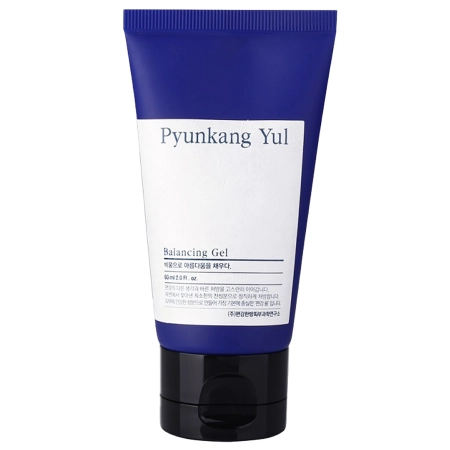 Pyunkang Yul - Balancing Gel - nawilżający żel do twarzy o miodopodobnej konsystencji. Produkt zawiera ekstrakt z korzenia traganka błoniastego, który wykazuje silne działanie przeciwzapalne, a także regeneruje i odżywia suchą i podrażnioną skórę. Zawarty olej z jojoba, który chroni przed czynnikami zewnętrznymi takimi jak wiatr, mróz, klimatyzowane pomieszczenia oraz zapobiega odparowywaniu wilgoci z naskórka. Żel posiada dość gęstą konsystencję, po wchłonięciu pozostawia skórę nawilżoną i ukojoną. Może być stosowany zarówno w porannej, jak i wieczornej pielęgnacji.