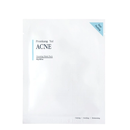 Pyunkang Yul - ACNE Dressing Mask Pack - maska o działaniu przeciwtrądzikowym, do stosowania na obszarach twarzy objętych wypryskami i zmianami trądzikowymi. Opakowanie zawiera cztery cienkie płaty nasączone esencją, w której skład wchodzi ekstrakt z kory wierzby białej, źródło naturalnego kwasu salicylowego, ma działanie przeciwzapalne i oczyszczające. W składzie znajdziemy również ekstrakt z kwiatu lotosu, który działa ściągająco i antybakteryjnie, a także rewitalizujący ekstrakt z forsycji. Dzięki zawartości hialuronianu sodu skóra pozostanie nawilżona i ukojona.