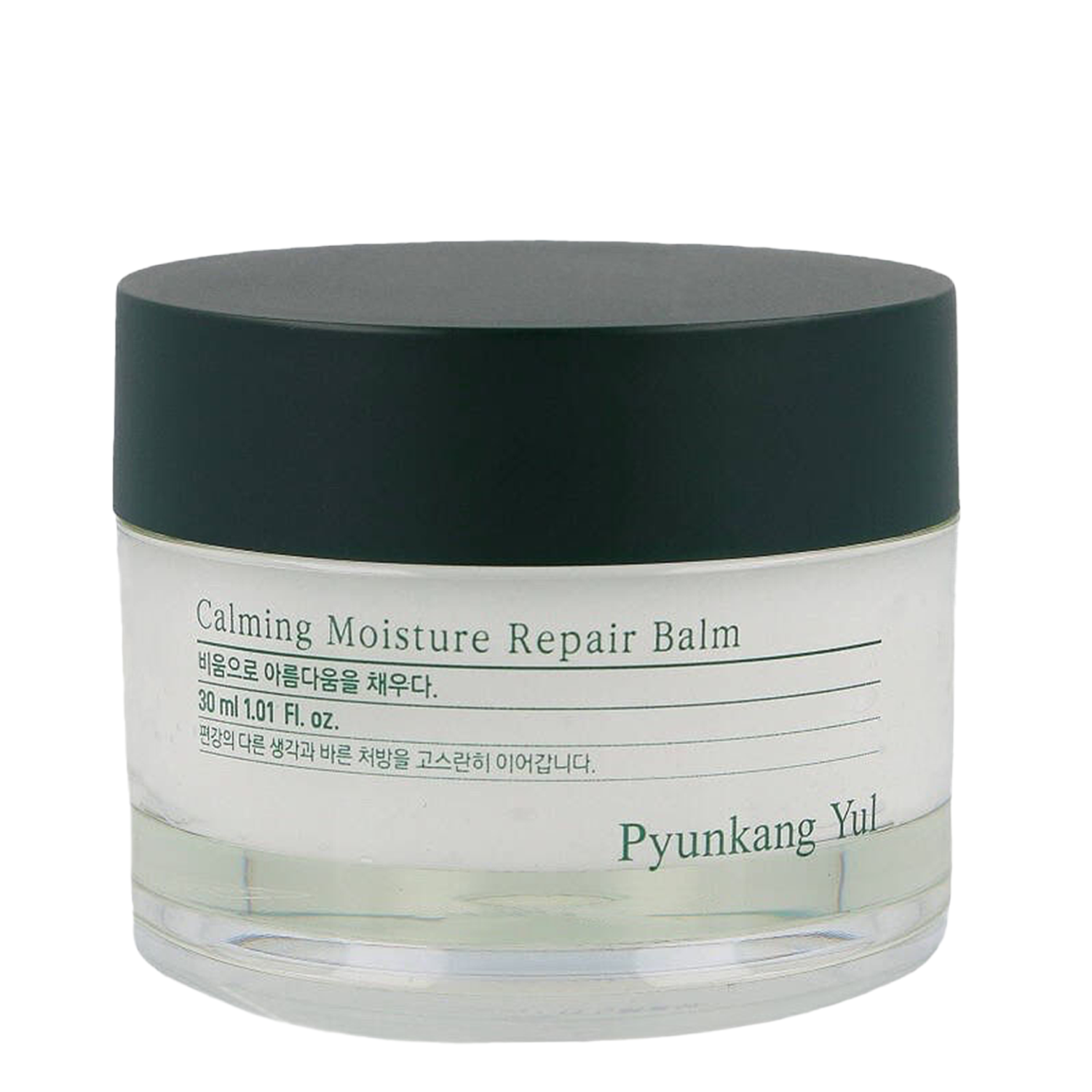Pyunkang Yul - Calming Moisture Repair Balm - balsam o działaniu nawilżającym, regenerującym, łagodzącym zaczerwienienia oraz podrażnienia skóry. W składzie obecny jest skwalan, zapewniający odpowiedni poziom nawilżenia skóry, jak również trehaloza, która zatrzymuje wodę w naskórku. Zawarty także w balsamie kompleks pięciu form kwasu hialuronowego działa nawilżająco, wiążąc wodę w skórze. Ekstrakt z drzewa herbacianego działa antybakteryjnie, przyspiesza gojenie się ran, a ekstrakt z wąkroty azjatyckiej łagodzi podrażnienia. Balsam został również wzbogacony w peptydy, stymulujące skórę do produkcji kolagenu i elastyny.