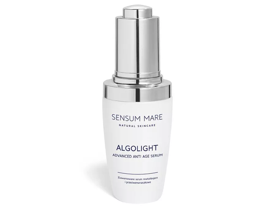 Sensum Mare - Algolight - Advanced Anti Age Serum - skoncentrowane serum do twarzy zostało stworzone z myślą o specjalistycznej pielęgnacji cery tłustej i mieszanej. Woda z lodowca stanowi cenne źródło minerałów, które normalizują i wzmacniają skórę. Niskocząsteczkowy kwas hialuronowy wiąże wodę w powierzchownych warstwach naskórka, dzięki czemu poprawia nawilżenie skóry, a wyciąg z pereł działa antybakteryjnie i przeciwzapalnie. W produkcie nie zabrakło także ekstraktu z 7 alg, które wzmacniają i rewitalizują skórę oraz łagodzą podrażnienia. Serum posiada lekką, żelową konsystencję, która idealnie sprawdzi się jako baza pod makijaż lub krem.