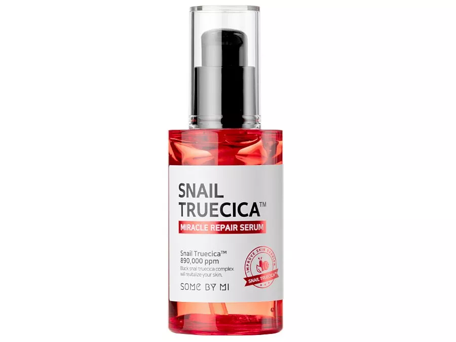 Some By Mi - Snail Truecica Miracle Repair Serum - serum naprawcze z filtratem ze śluzu ślimaka wykazującym działanie łagodzące, gojące oraz regenerujące. W składzie znajdziemy również połączenie ekstraktu z bylicy zwyczajnej, z liści drzewa herbacianego i z wąkroty azjatyckiej określane jako Truecica™, które łagodzi podrażnioną skórę, wspomaga gojenie i regenerację. Niacynamid przyspiesza proces redukcji przebarwień, a ekstrakt z kory wierzby białej o dużej zawartości naturalnego kwasu salicylowego (prekursorów) działa przeciwzapalnie, antyseptycznie, oczyszczająco i złuszczająco. Ponadto produkt został wzbogacony o beta-glukan, który nawilża i łagodzi podrażnienia.