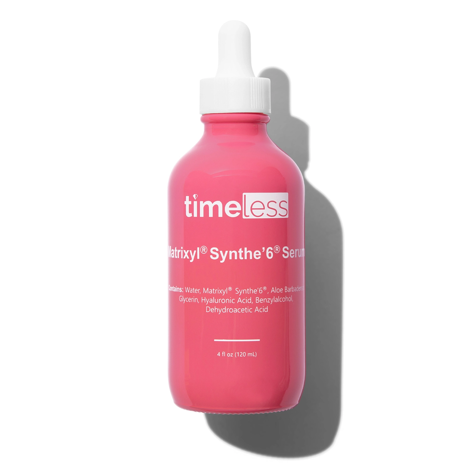 Timeless - Skin Care - Matrixyl Synthe'6 Serum - serum do twarzy o działaniu przeciwzmarszczkowym. Zawiera Matrixyl Synthe'6 - silny peptyd, który działa przeciwzmarszczkowo i wzmacnia połączenie między naskórkiem, a skórą właściwą. Kwas hialuronowy to jeden z najsilniejszych składników nawilżających. Zatrzymuje więcej wody w sobie niż jakakolwiek inna naturalna substancja. Dba o utrzymanie prawidłowej kondycji skóry i wzmaga aktywność procesów jej regeneracji. Łagodzi stany zapalne. Serum posiada lekką formułę. Łatwo się rozprowadza i szybko wchłania.